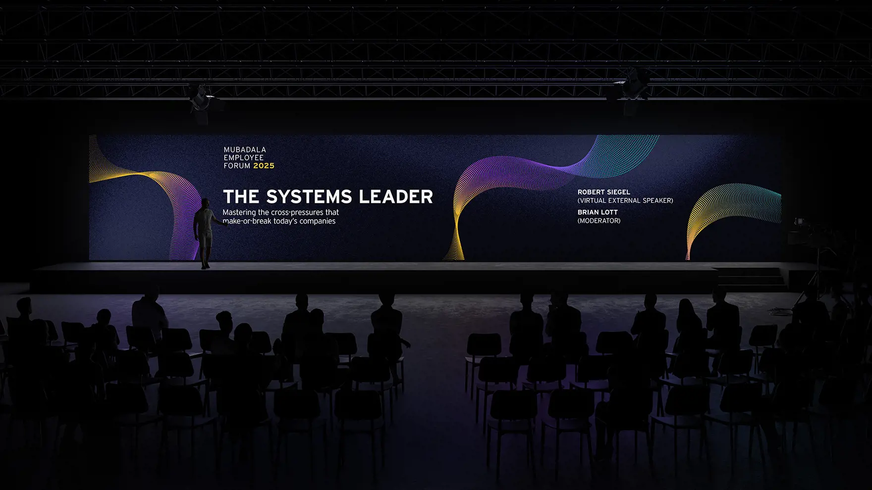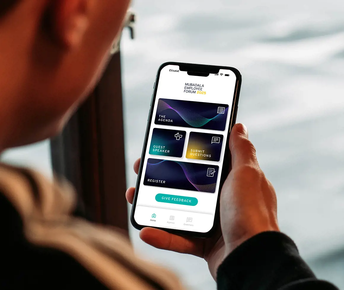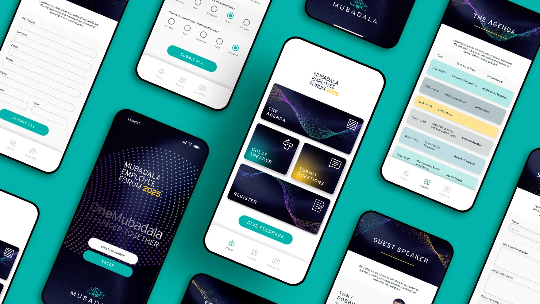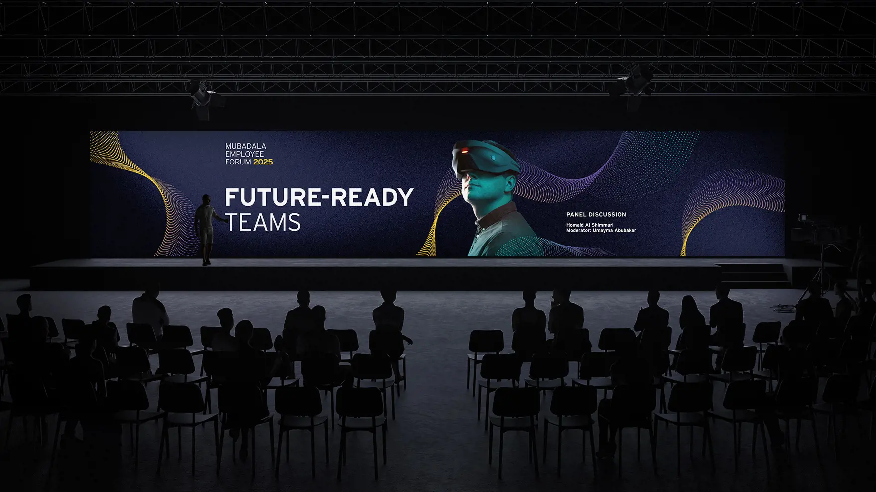 For the 2025 edition of the Employee Forum, Mubadala brought together employees from four different organisations under the umbrella of One Mubadala. We were tasked with developing a creative theme that would feel inclusive and familiar to the attendees. To achieve this, we employed a limited colour palette drawn from each of the entities, we also used colour treated photography to minimise the number of colours in each application and ensure the palette felt coherent and ownable. This, in addition to a key graphic comprising multiple small dots to create larger, dynamic shapes, further emphasised the unifying message underlined by our theme, “Stronger Together” - multiple individuals or entities working as one. These key graphics also featured organic yet futuristic fluid wave forms that created a sense of energy, motion and future-focused momentum.