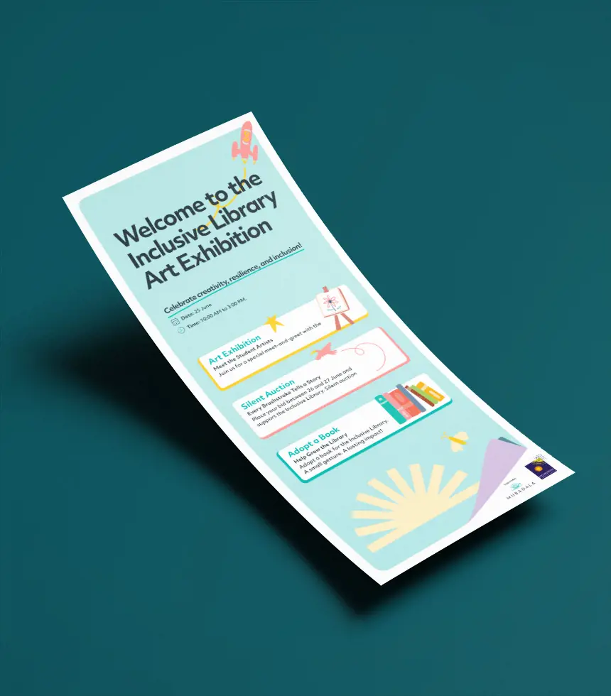 Following the campaign’s success, we were asked to support the grand launch of the Inclusive Library. Acting as brand guardians, we partnered with the events agency to shape colour schemes, art direction and structures, while also creating launch assets that carried the same inclusive spirit. Among these was a bespoke notepad featuring the children’s own artworks and stories—a thoughtful, lasting reminder of the project that celebrated their creativity and made them central to the library’s identity.