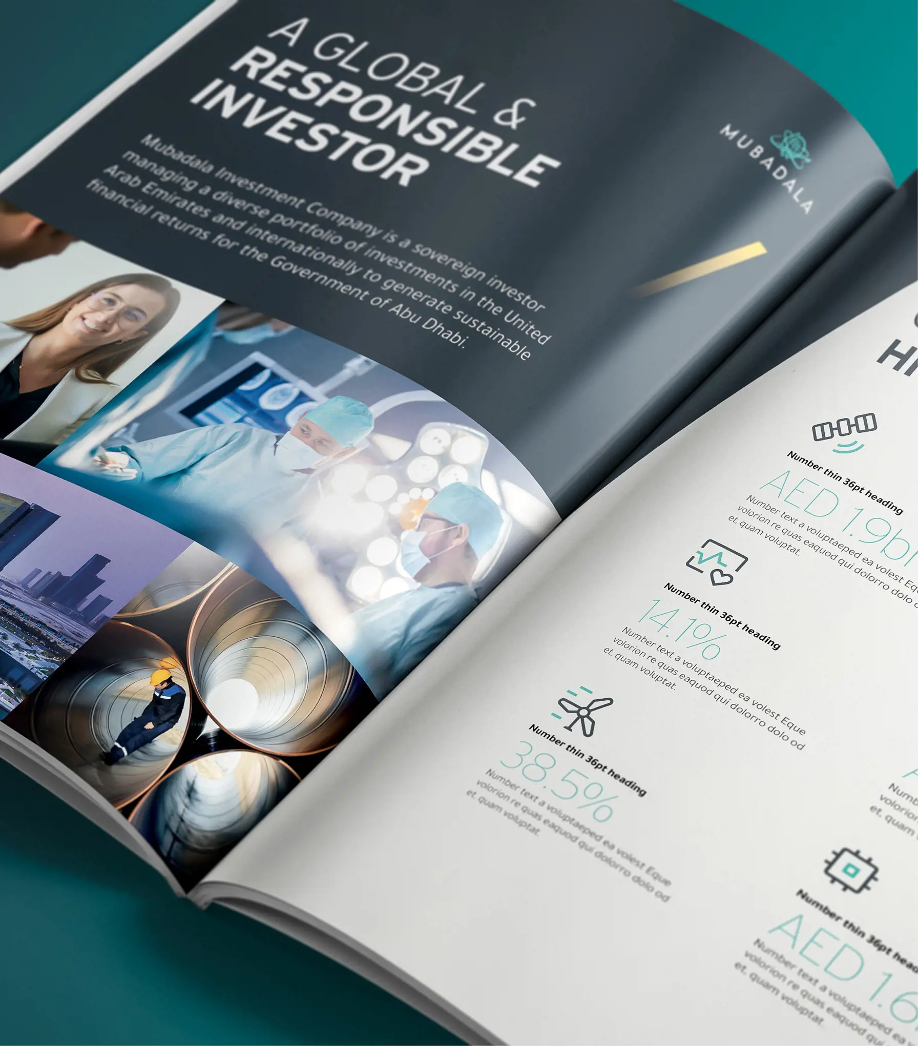 In a rapidly evolving digital landscape, Mubadala recognized the need to modernize its brand system to stay relevant and globally resonant. We were engaged to deliver a refined, future-ready visual identity that maintained brand equity while addressing key usability challenges. This included an outdated photography style, a limited and subdued colour palette, and corporate fonts that lacked legibility across digital applications and platforms such as social media and sponsorship environments.
