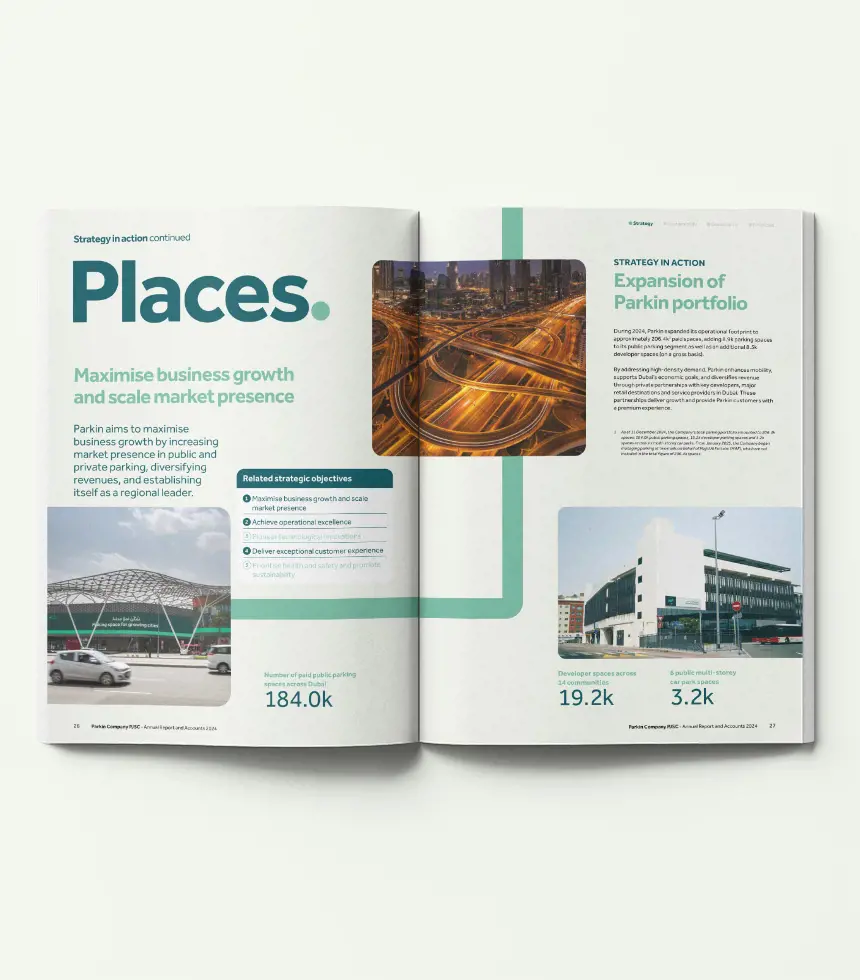 The 2024 Annual Report marked a milestone year for Parkin, following its record-breaking IPO on the DFM and rapid establishment as a leader in mobility solutions. Our role was to articulate Parkin’s growth potential and operational strength while signalling its ambitions as a next-generation, dividend-paying infrastructure business.